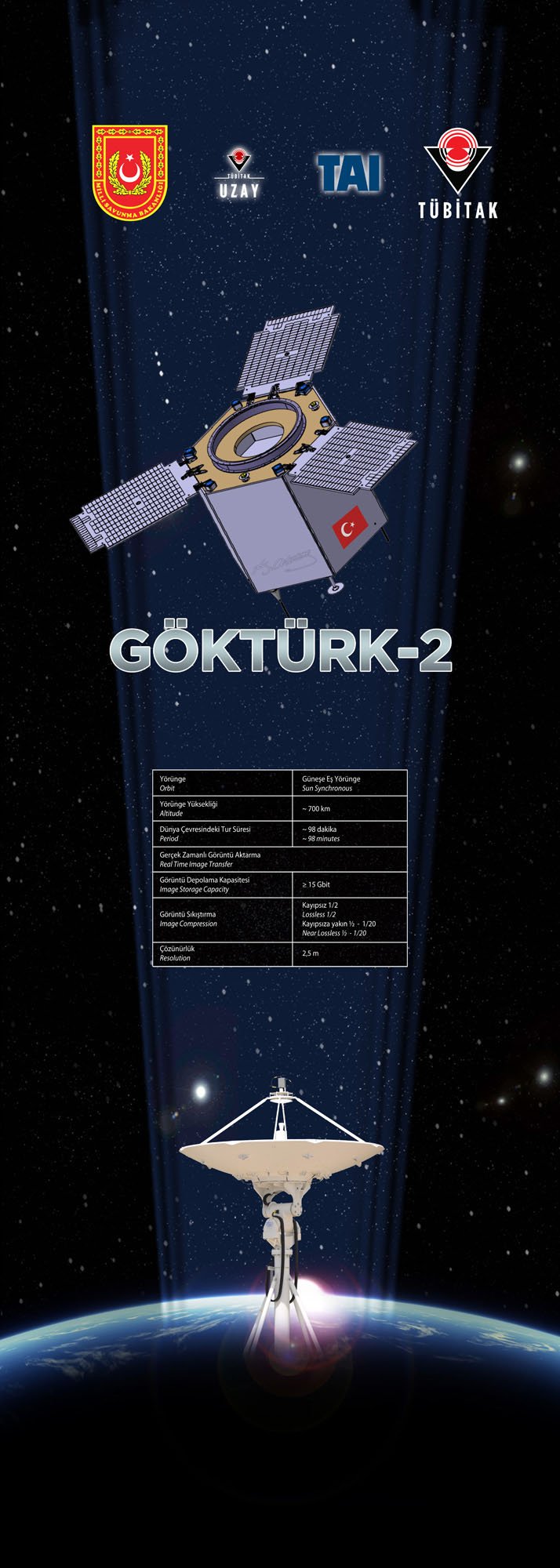 GÖKTÜRK-2 Projesi kapsamında; uzay ve uydu sistemlerine yönelik teknoloji, uzman insan gücü ve alt yapı geliştirilmesi, Türk Silahlı Kuvvetleri’nin uydu görüntü ihtiyaçları ile diğer kamu kurum ve kuruluşların gözlem ve araştırma ihtiyaçlarının milli imkan ve yeteneklerle karşılanması hedeflenmektedir. Tedarik Makamı’nın MSB AR-GE olduğu TÜBİTAK UZAY – TUSAŞ İş Ortaklığı tarafından gerçekleştirilecek ve sistem seviyesindeki tüm sorumluluklar İş Ortaklığı’na ait olacaktır. Ülkenin mevcut alt yapı imkan ve kabiliyetleri azami ölçüde kullanılacaktır. GÖKTÜRK-2 Projesi, uydu tasarım, üretim, entegrasyon, test ve yazılım konularında; tesis, techizat ve personel alt yapısının oluşturulması ve müteakip uydu ihtiyaçlarının milli imkanlar ile karşılanması yolundaki ilk adımdır. Sistem seviyesinde tüm sorumluluk TÜBİTAK UZAY – TUSAŞ İş Ortaklığı’na aittir. GÖKTÜRK-2. TÜBİTAK KAYNAKLARIYLA GERÇEKLEŞTİRİLECEK İLK MİLLİ GÖZLEM UYDUSUDUR.